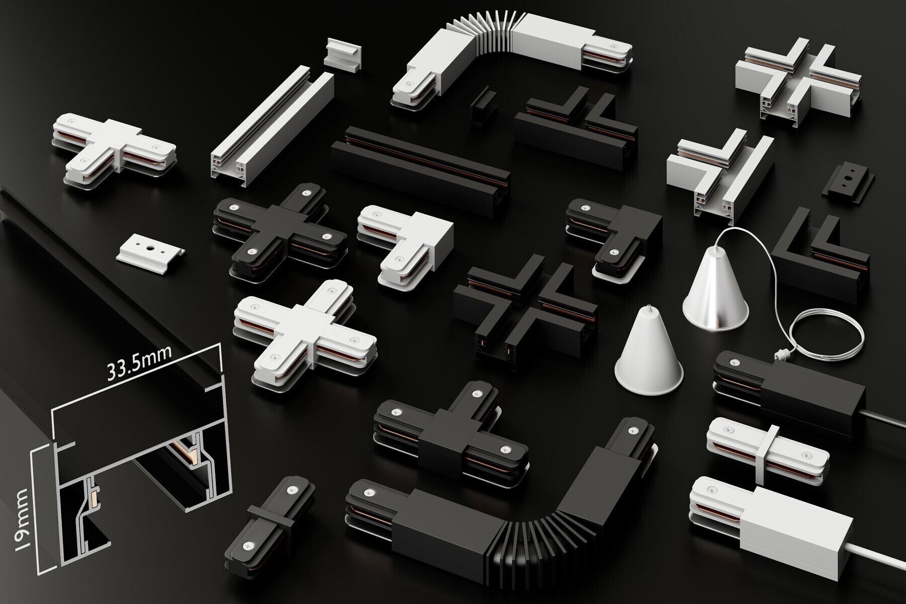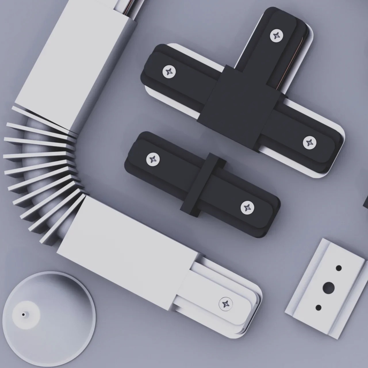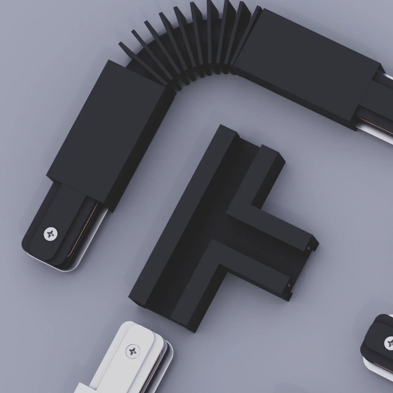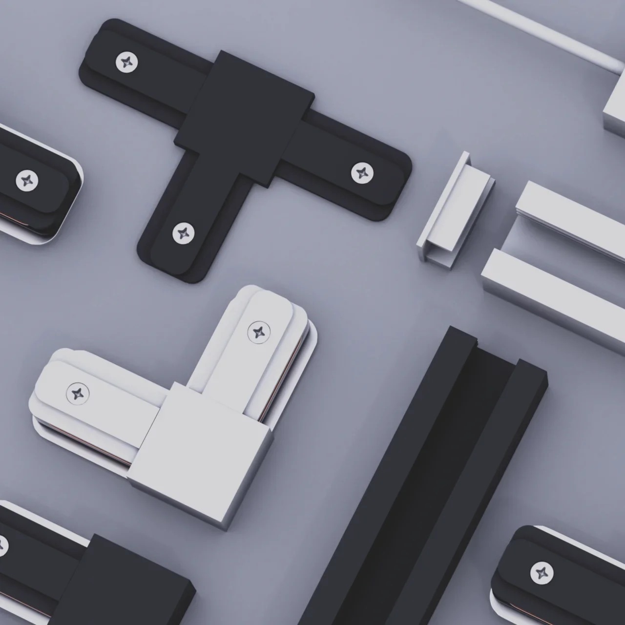 Трек можно без проблем отрезать в нужный вам размер и создавать прямоугольные формы с помощью специальных адаптеров: Прямой соединитель, T-образный соединитель, L-образный соединитель, X-образный соединитель