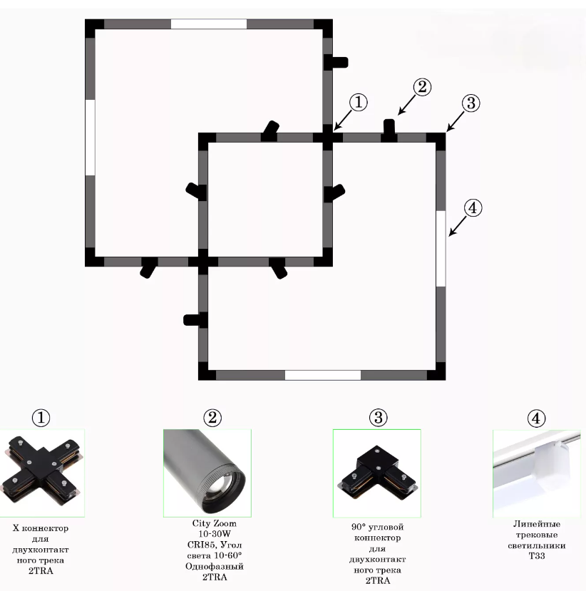 Серия трековых светильников CITY ZOOM 2TRA 3000K/4000K/6000К