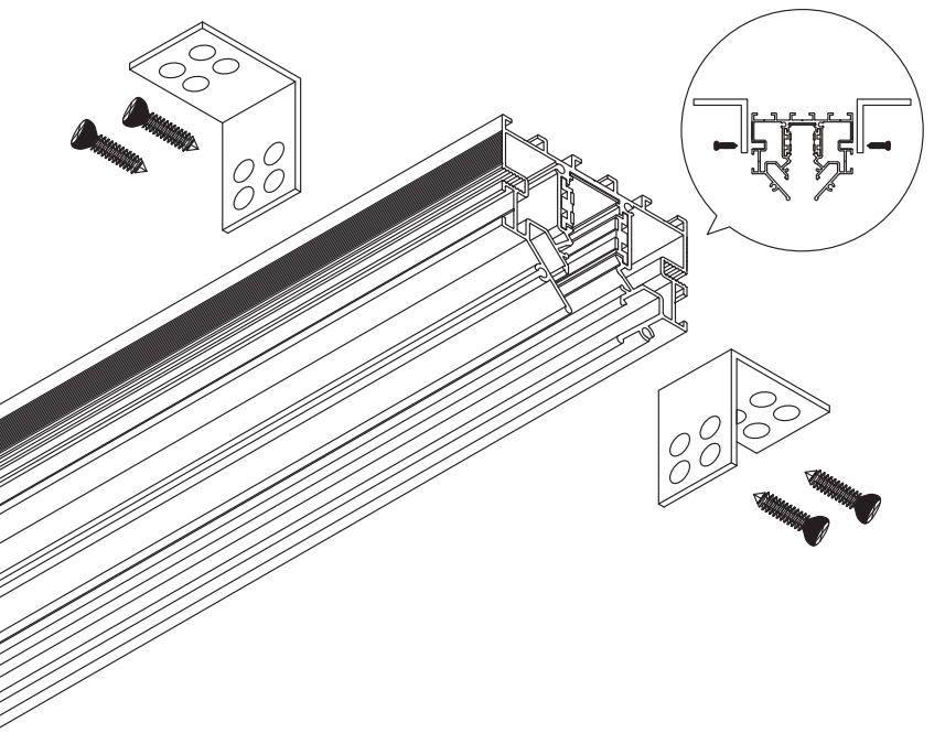 Конструкция магнитного шинопровода позволяет в считанные секунды переместить светильник по длине шины. Питающее напряжение в новой магнитной шинопроводной системе подается на 4 медных провода, проходящие внутри алюминиевого корпуса.