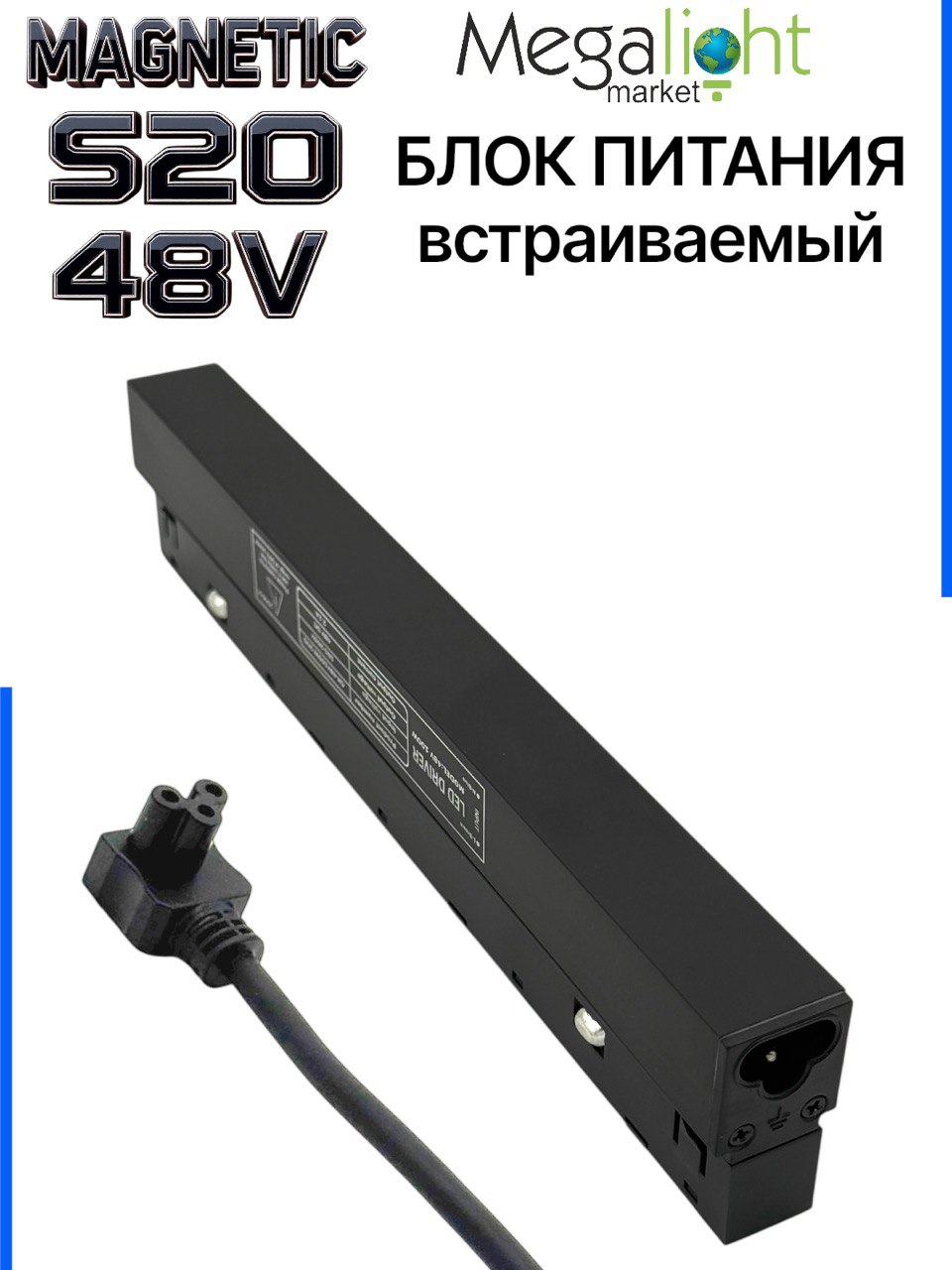 Алюминиевый корпус линейного типа с защитным функционалом от перегрузок, превышения выходного напряжения и коротких замыкания на выходе. Входной разъем стандарта 3PIN с длиной провода 45см применяется для подключения к сети 220V.