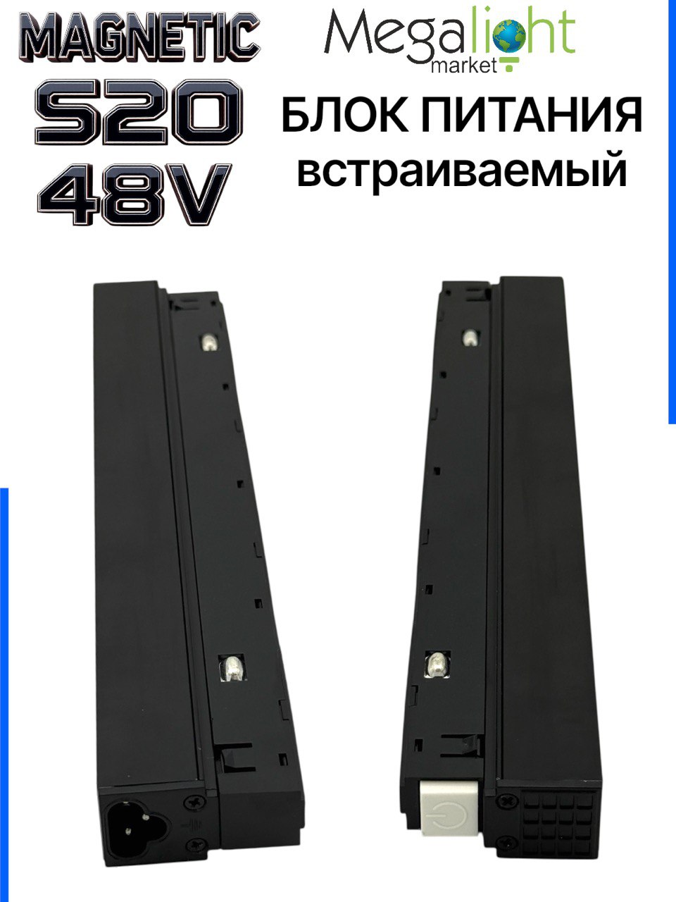 Магнитный встраиваемый шинопровод предназначен для эксплуатации со светильниками серии MAGNETIC S20, рассчитанными на питание от источника постоянного тока DC 48 В.