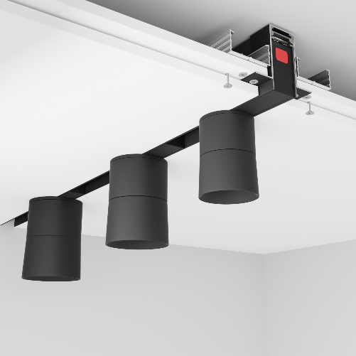 Трек крепится к стандартным профилям для гипсокартона или натяжные потолки. Это удобно и обеспечивает простую, быструю установку системы. Монтаж отличается минимальным слоем шпаклевки. Мы сделали специальную монтажную скобу для встраиваемого монтажа в ГКЛ.