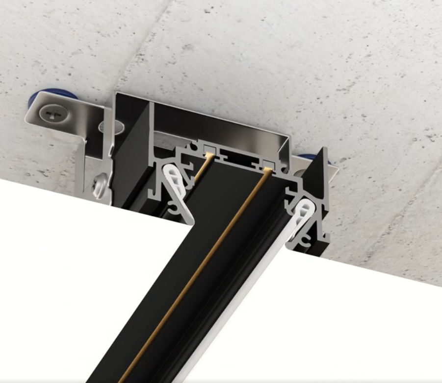 Трек и крепления скрыты от глаз, что придает потолку гладкий и ровный вид. Гарпунная система MAGNETIC H5 48V обеспечивает высокую прочность крепления, что позволяет использовать ее в помещениях с большой площадью потолка и сложной конфигурацией.
