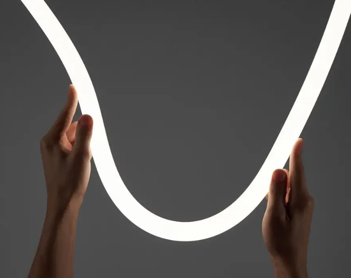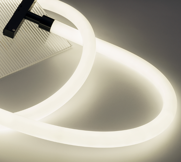 Линейный гибкий светильник с матовым рассеивателем и углом света 360° излучает световой поток всей своей поверхностью.